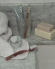 Kulltannbørster er et populært alternativ innen tannhelse, spesielt for evnen til å redusere bakterier og forbedre munnhygienen. Børstehårene er forsterket med aktivt kull, som har absorberende egenskaper og bidrar til å fjerne mer plakk og redusere bakterievekst. Håndtaket er laget av celluloseacetat, et materiale som absorberer lite fuktighet, noe som reduserer bakterieveksten. Tannbørsten gjennomgår håndpolering for en jevn og behagelig finish. Håndlaget i Milano, Italia.